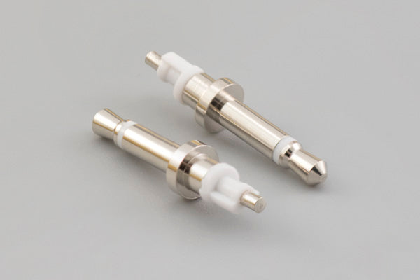 Connector, mono plug, 2.5xL19.6 mm, brass, nickel plated, white, molding style