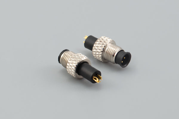 Connector, M5 A-code plug, 3 pin, 5xL14.8 mm, molding style, solder cup, gold plated, IP67