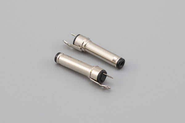 Connector, dc plug, 3.5x1.35x20 mm, dual solder tabs, spring contacts, nickel plated, 105 °C