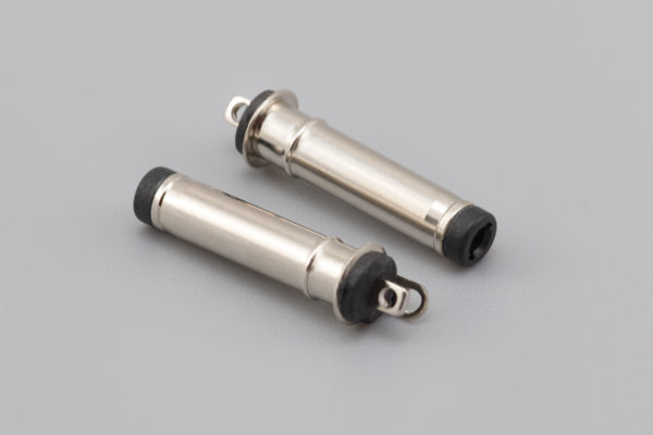 Connector, dc plug, 4.0x1.7x21.3 mm, dual solder tabs, spring contacts, nickel plated, 105 °C