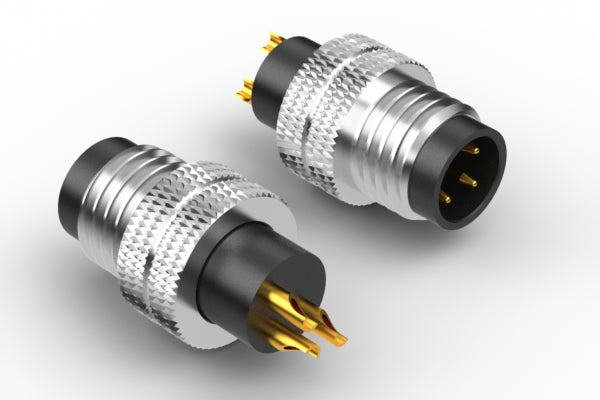 Connector, M8 A-code plug, 3 pin, 8xL19.2 mm, molding style, solder cup, gold plated, IP67