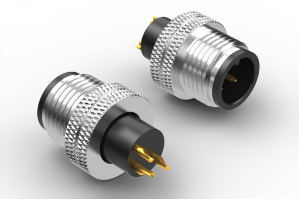 Connector, M12 A-code plug 3 pin, 12xL22mm, molding style, solder cup, gold plated, IP67