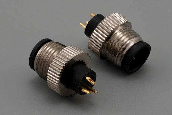Connector, M12 A-code plug, 3 pin, 12xL22 mm, molding style, solder cup, gold plated, IP67