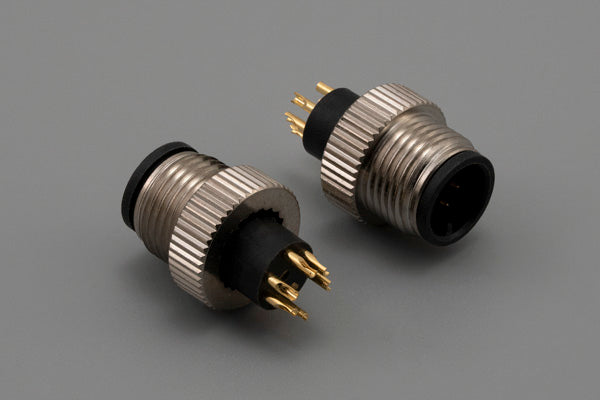 Connector, M12 A-code plug, 6 pin, 12xL22 mm, molding style, solder cup, gold plated, IP67