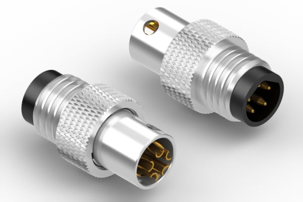 Connector, M8 B-code plug, 5 pin, 8xL19.2 mm, molding style, solder cup, gold plated, IP67, shielded