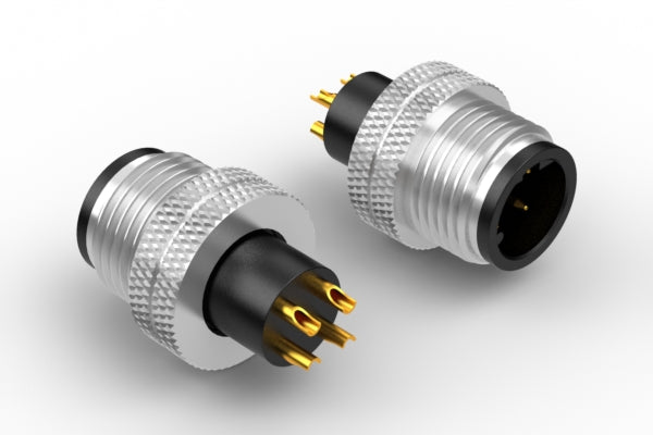 Connector, M12 D-code plug, 4 pin, 12xL22 mm, molding style, solder cup, gold plated, IP67