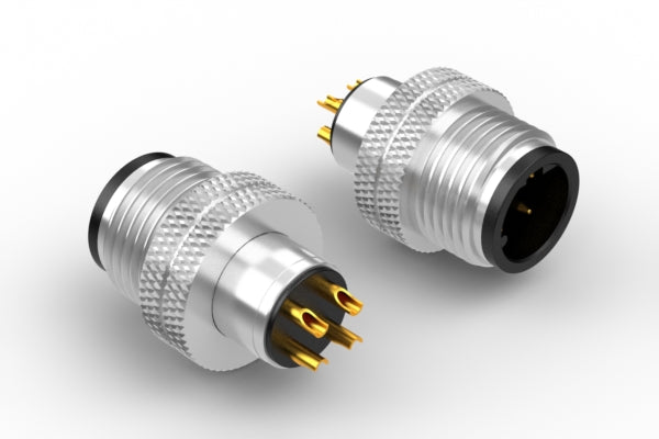 Connector, M12 D-code plug 4 pin, 12xL22mm, molding style, solder cup, gold plated, IP67, shielded