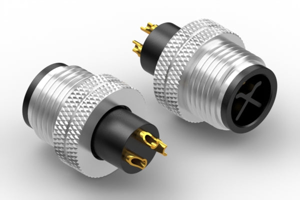 Connector, M12 S-code plug, 3 pin, 12xL25 mm, gold plated, molding style, solder cup, IP67