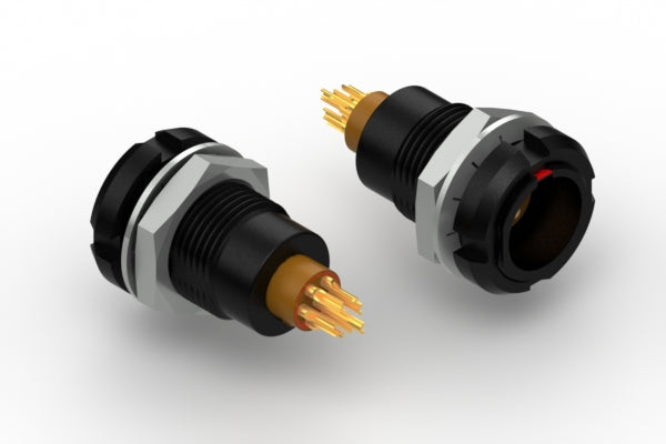Connector, PPL7, 7C, 0° panel socket, front-back mount, 7x21.5 mm, black chrome, solder