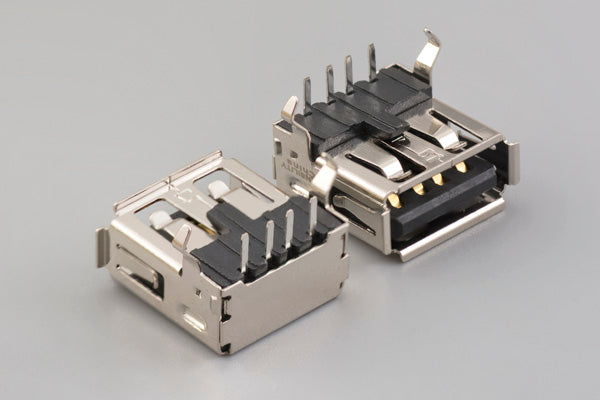 Connector, USB A jack, thru hole, 90°, board lock, nickel plated