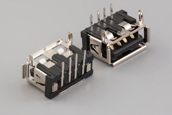 Connector, USB A jack, thru hole, 90°, board lock, nickel plated