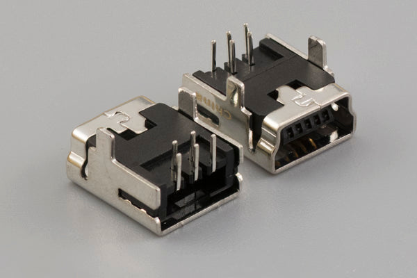 Connector, USB mini B jack, thru hole, 90°, nickel plated