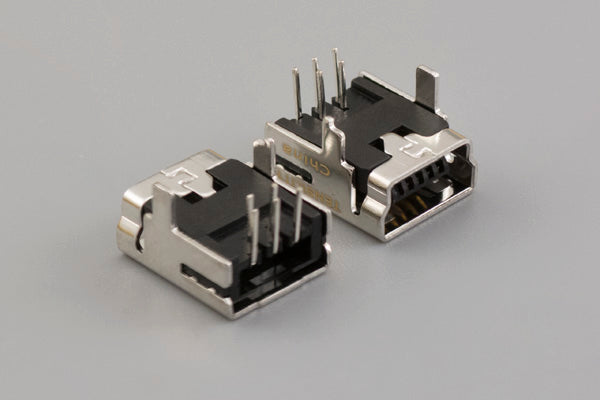 Connector, USB mini B jack, thru hole, 90°, nickel plated