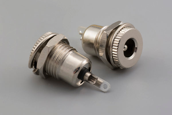Connector, dc jack, 5.5x2.5xL24.2 mm, panel mount, nickel plated, threaded, nut and washer