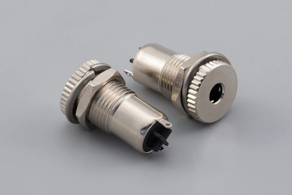 Connector, mono jack, 3.5xL20.5 mm, panel mount, nickel plated, threaded, nut and washer