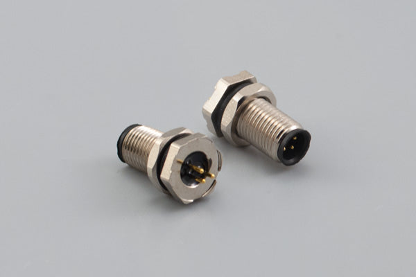 Connector, M5 A-code plug, 3 pin, 5xL13 mm, panel mount, thru hole, gold plated, IP67