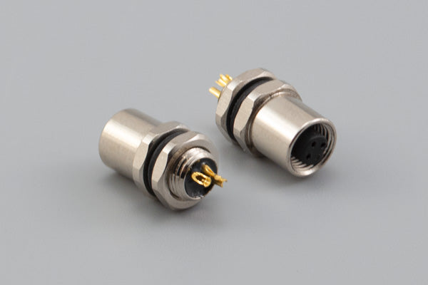 Connector, M5 A-code socket, 3 pin, 5xL13.7 mm, panel mount, solder cup, gold plated, IP67