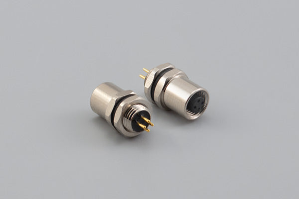 Connector, M5 A-code socket, 4 pin, 5xL13.7 mm, panel mount, thru hole, gold plated, IP67