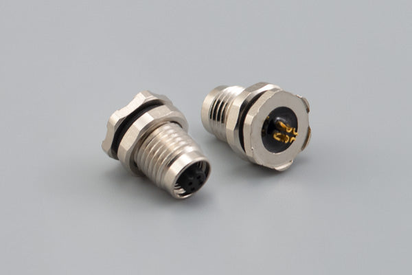 Connector, M5 A-code socket, 4 pin, 5xL13.7 mm, panel mount, solder cup, gold plated, IP67