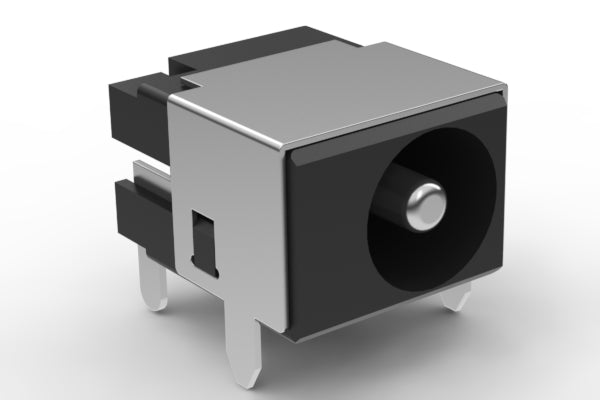 Connector, dc jack 5.5x2.1 mm, PCB mount, 90°, silver plated, thru hole