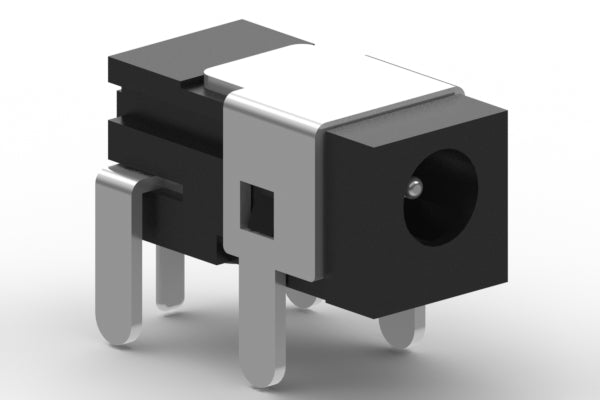 Connector, dc jack, 2.35x0.7xL12 mm, thru hole, 90°, silver plated