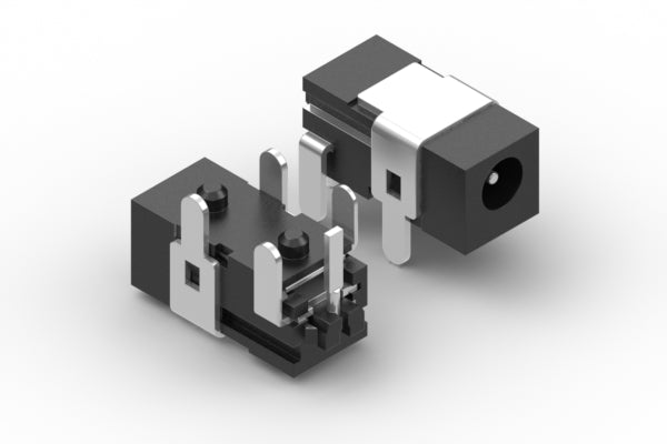 Connector, dc jack, 2.35x0.7xL12 mm, thru hole, 90°, silver plated