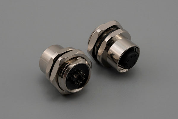 Connector, M12 A-code socket, 6 pin, 12xL21.5 mm, panel mount, solder cup, gold plated, IP67