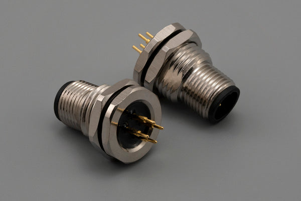 Connector, M12 A-code plug, 4 pin, 12xL29.2 mm, panel mount, thru hole, gold plated, IP67