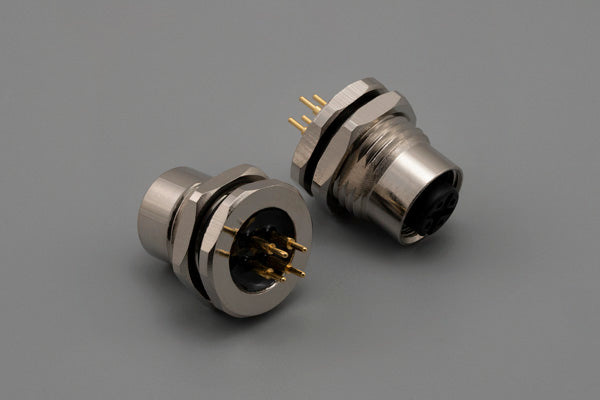 Connector, M12 A-code socket, 4 pin, 12xL26.2 mm, panel mount, thru hole, gold plated, IP67