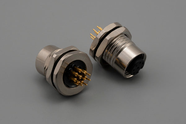 Connector, M12 A-code socket, 8 pin, 12xL26.2 mm, panel mount, thru hole, gold plated, IP67