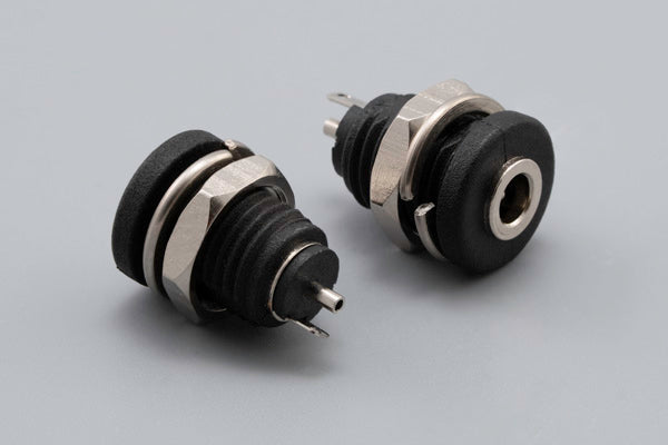 Connector, dc jack, 3.5x1.35xL16.5 mm, panel mount, threaded, nut and washer