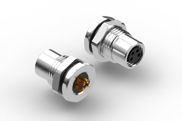 Connector, M8 A-code socket, 4 pin, 8xL18.7 mm, panel mount, solder cup, gold plated, IP67