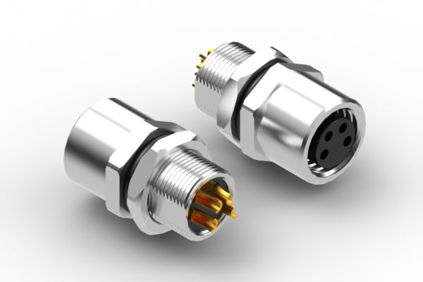 Connector, M8 A-code socket, 4 pin, 8xL18.7 mm, panel mount, solder cup, gold plated, IP67