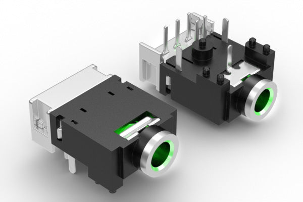 Connector, audio jack with green LED, 3C, 3.5xL18 mm, thru hole, silver plated