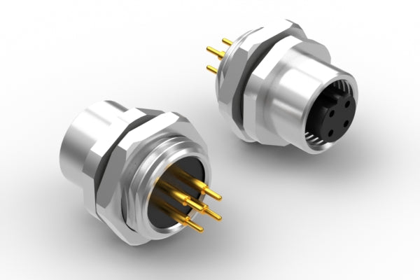 Connector, M12 B-code socket, 4 pin, 12xL26.2 mm, panel mount, thru hole, gold plated, IP67