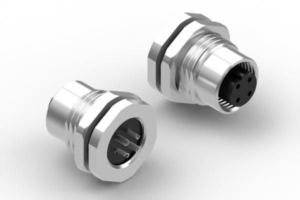 Connector, M12 B-code socket, 4 pin, 12xL21.5 mm, panel mount, solder cup, gold plated, IP67