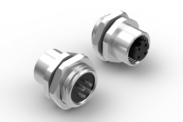 Connector, M12 D-code socket, 4 pin, 12xL21.6 mm, panel mount, solder cup, gold plated, IP67