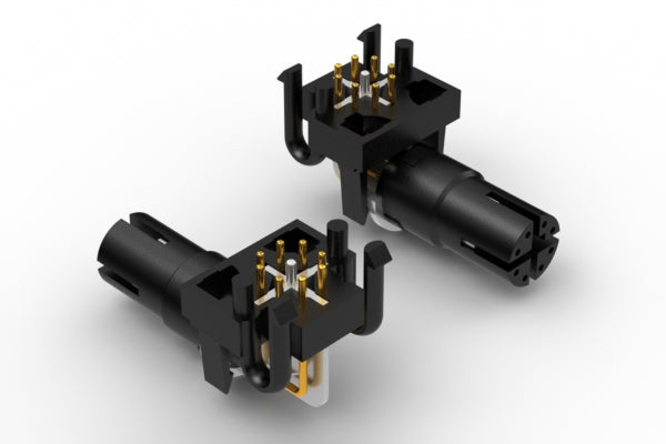Connector, M12 X-code socket, 8 pin, 8xL29.6 mm, thru hole, 90°, gold plated
