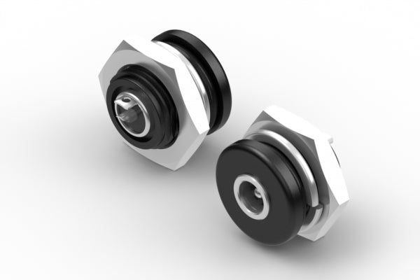 Connector, dc jack, 5.5x2.5xL17.6 mm, panel mount, nickel plated, IP67, threaded, nut and washer