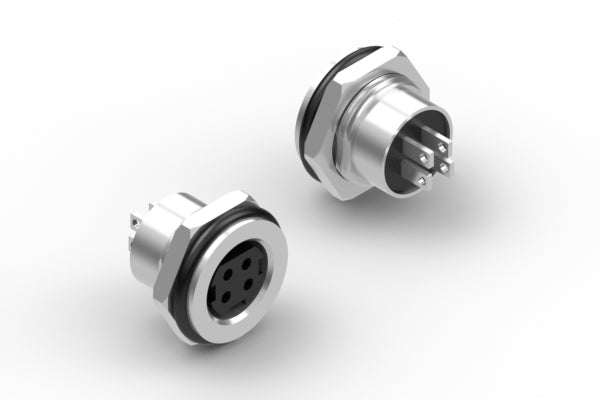 Connector, power DIN jack, 4 pin, 14xL16.27 mm, panel mount, nickel plated, IP67