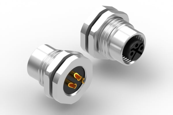 Connector, M12 S-code socket, 3 pin, 12xL22 mm, panel mount, solder cup, gold plated, IP67