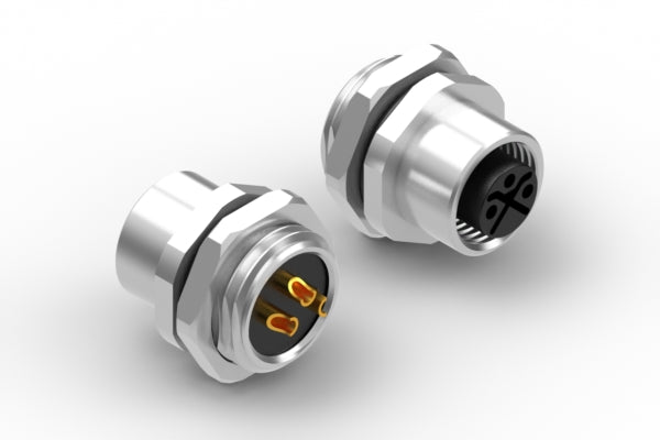 Connector, M12 S-code socket, 3 pin, 12xL22 mm, panel mount, solder cup, gold plated, IP67