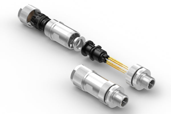 Connector, M12 X-code plug 8 pin, L60 mm, crimp, assembly style, gold plated, IP67, shielded