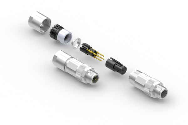 Connector, M12 A-code plug, 4 pin, 12xL49.5 mm, assembly style, crimp, gold plated, IP67, shielded