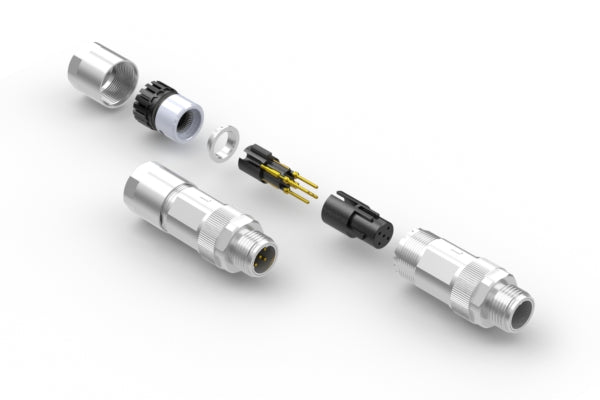 Connector, M12 A-code plug, 5 pin, 12xL49.5 mm, assembly style, crimp, gold plated, IP67, shielded