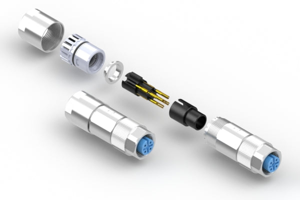 Connector, M12 A-code socket, 5 pin, 12xL48 mm, assembly style, crimp, gold plated, IP67, shielded