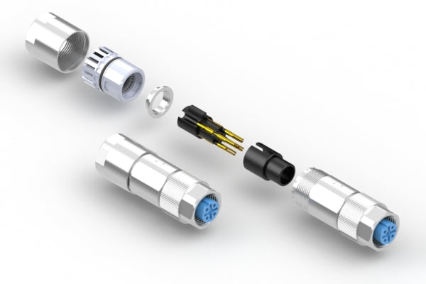 Connector, M12 D-code socket, 5 pin, 12xL48 mm, assembly style, crimp, gold plated, IP67, shielded