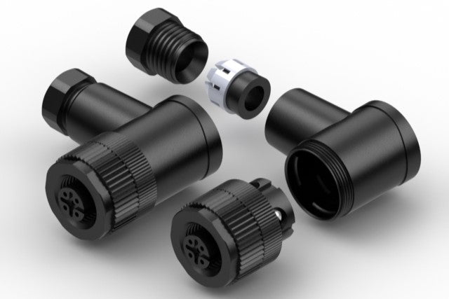 Connector, M12 A-code socket, 5 pin, 12xL39 mm, 90° gold plated, assembly style, screw terminal, IP67, plastic thread