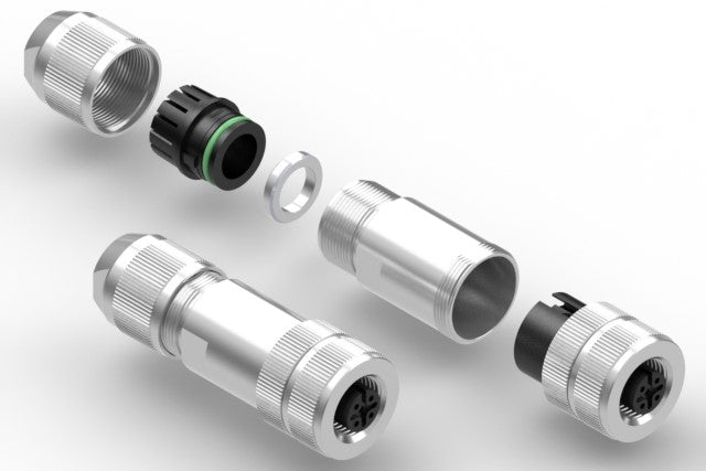 Connector, M12 A-code socket, 4 pin, 12xL58.9 mm, gold plated, assembly style, screw terminal, IP67, shielded