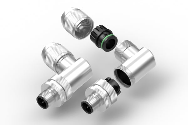 Connector, M12 D-code plug, 5 pin, 12xL43 mm, 99° gold plated, assembly style, screw terminal, IP67, shielded